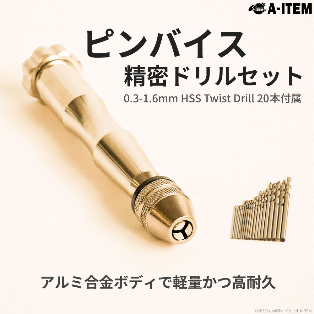 精密 ピンバイス ドリル セット 0.3〜3.6mm対応 ハンドドリル 本体+HSS ツイストドリル20本 精密ドリル 手動ドリル タップハンドル DIY