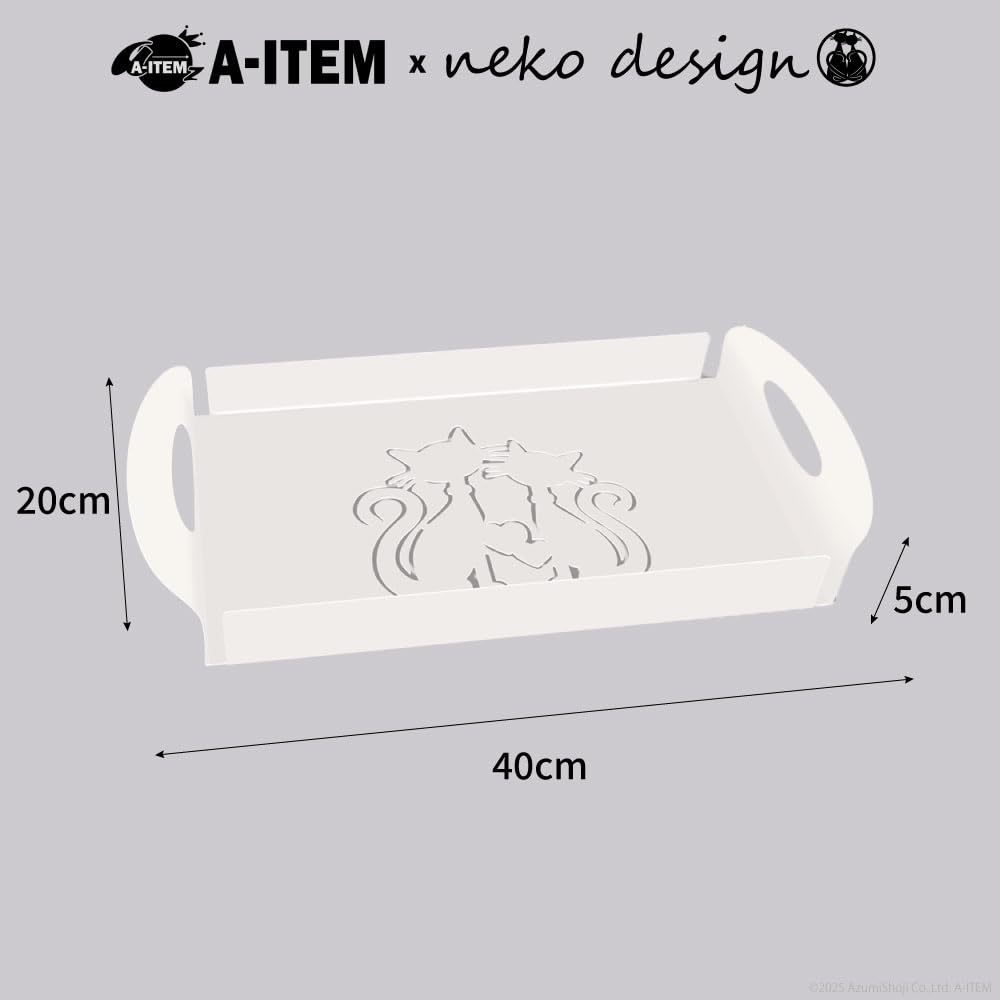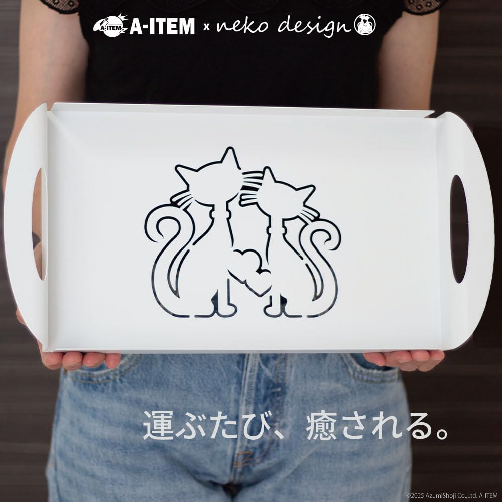 A-ITEM × neko design 猫のトレー お盆 サービングトレイ (ホワイト)
