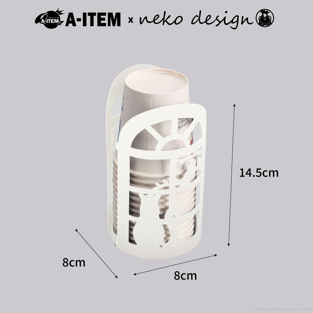 A-ITEM × neko design 猫デザイン紙コップスタンド(縦置き) は、未使用の紙コップを上から差し込むだけで簡単に収納できる縦置きカップホルダーです。
