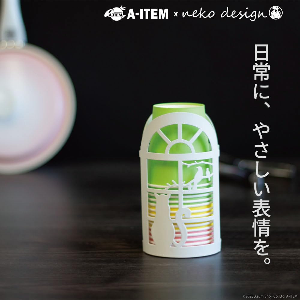 A-ITEM × neko design 猫デザイン 紙コップスタンド 窓前の猫 縦置き (ホワイト)