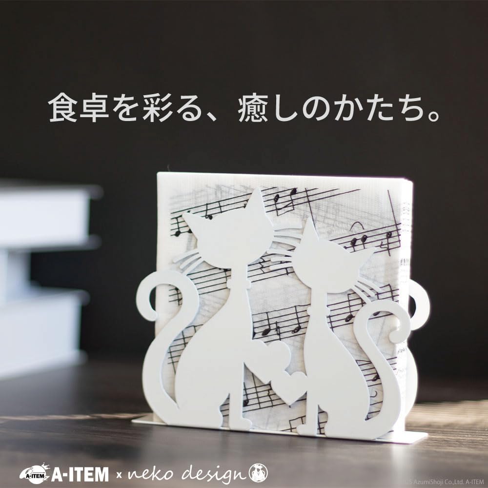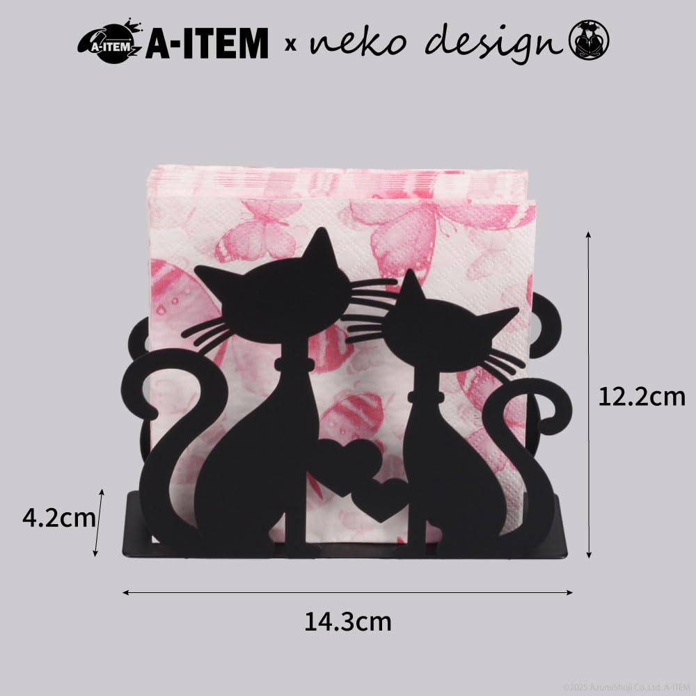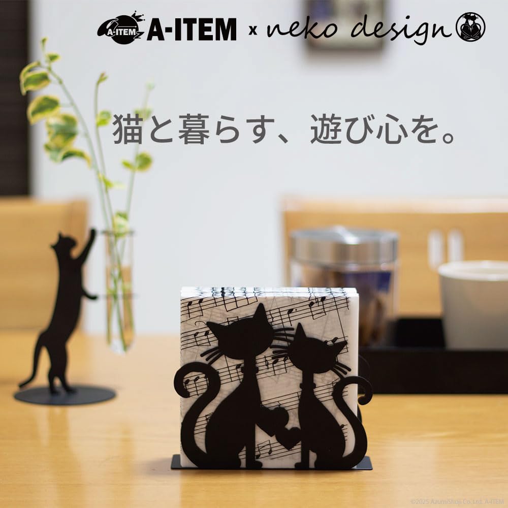 A-ITEM × neko design 猫 ナプキンホルダー 卓上 ペーパーナプキンスタンド 立て型 (ブラック)