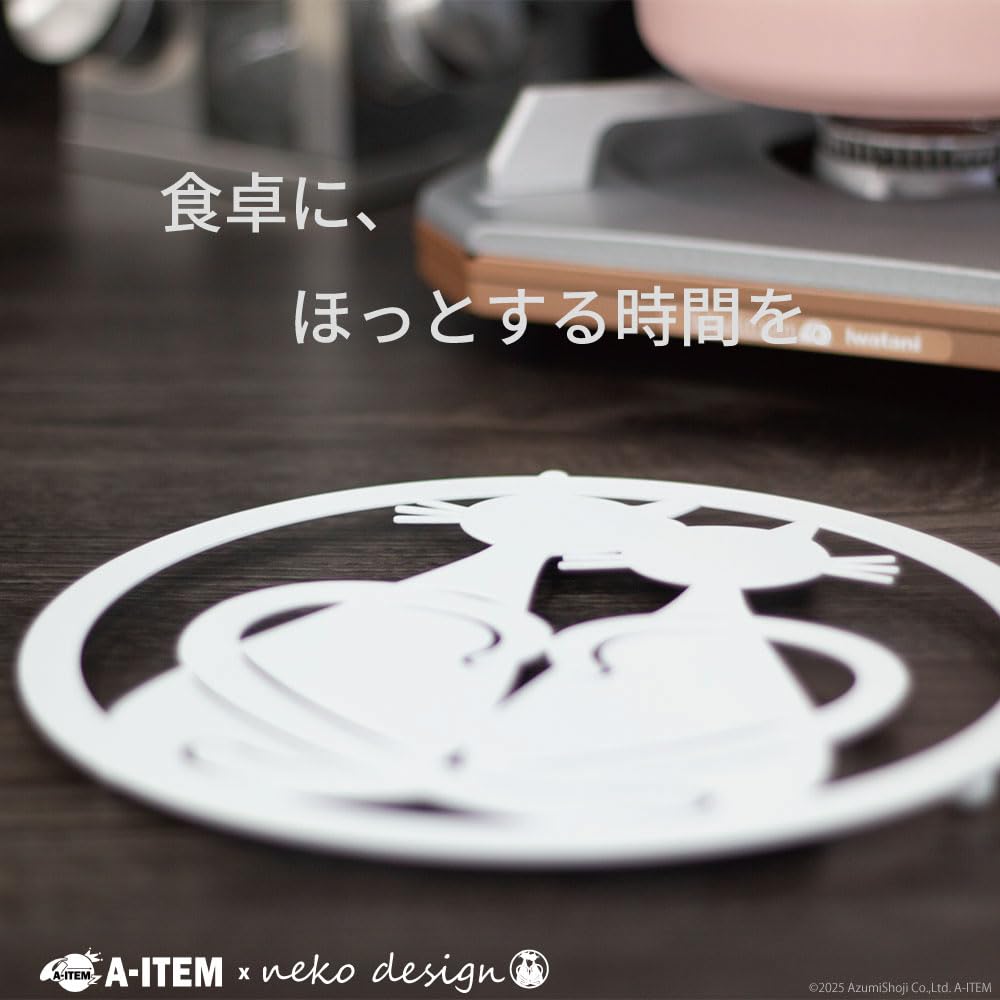 A-ITEM × neko design 猫デザインの鍋敷きトリベット (ホワイト)