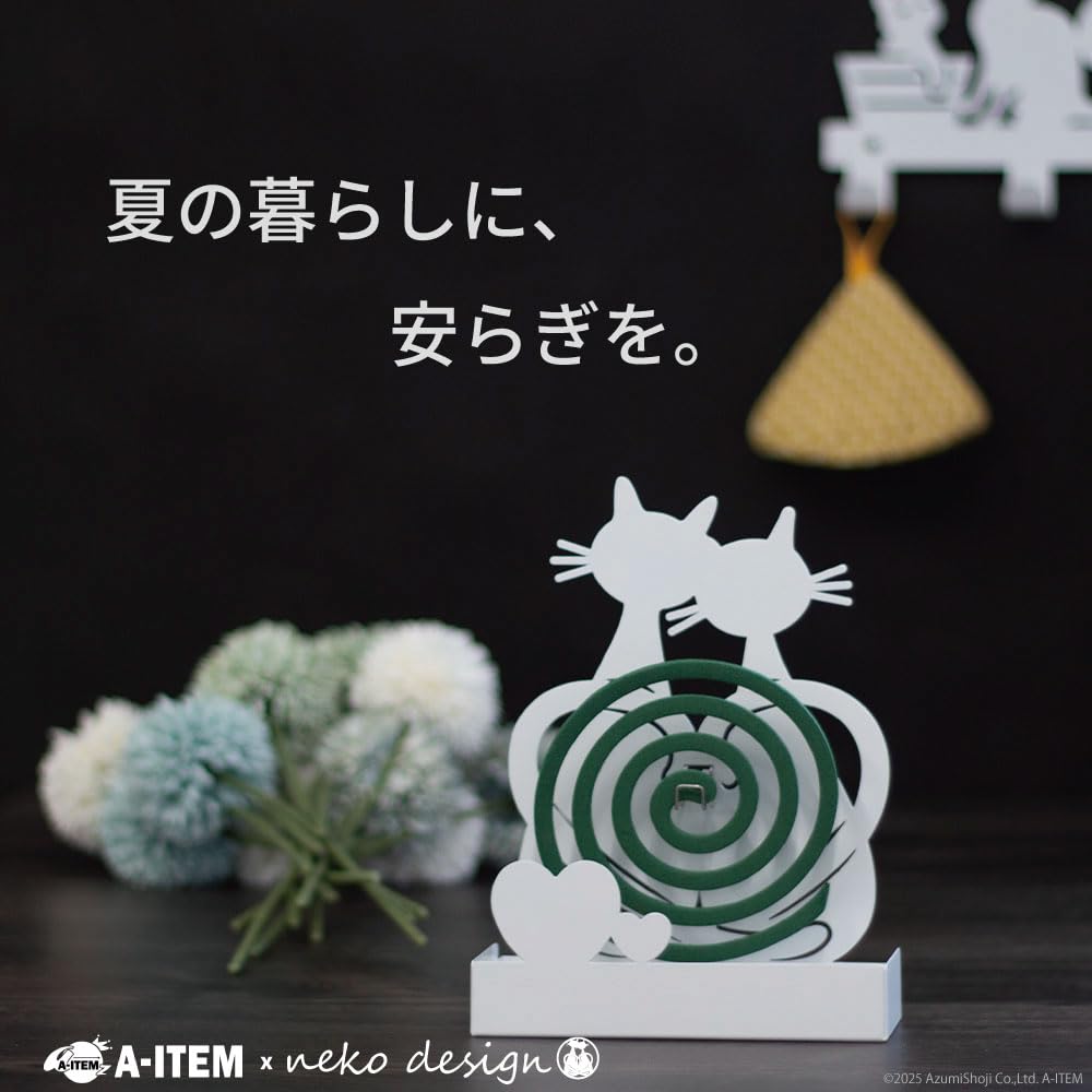A-ITEMの「ねこデザイン蚊取り線香スタンド」は、夏の必需品をおしゃれに楽しめるアイテム。白猫のかわいさ、黒猫のシックさ、それぞれ違った雰囲気でインテリアやアウトドアを彩ります。