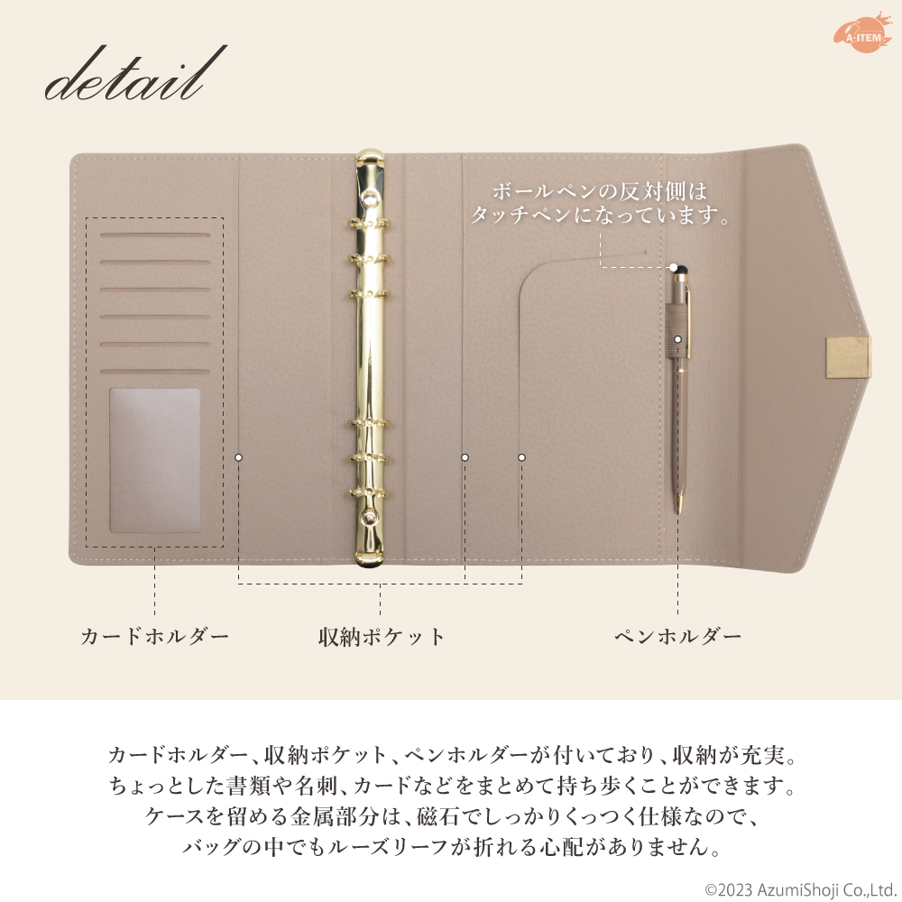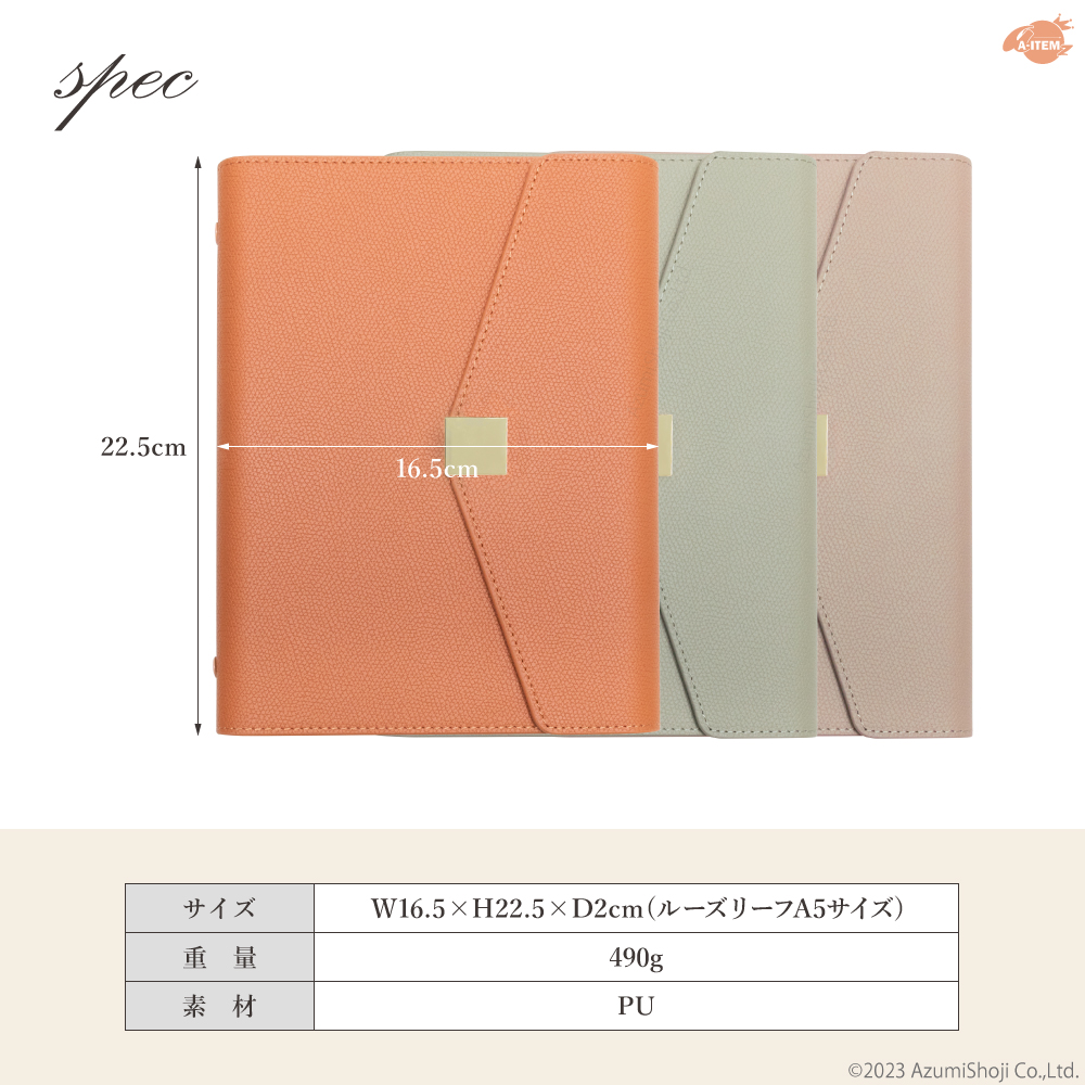 ルーズリーフカバー システム手帳 A5 おしゃれ 6穴 リング